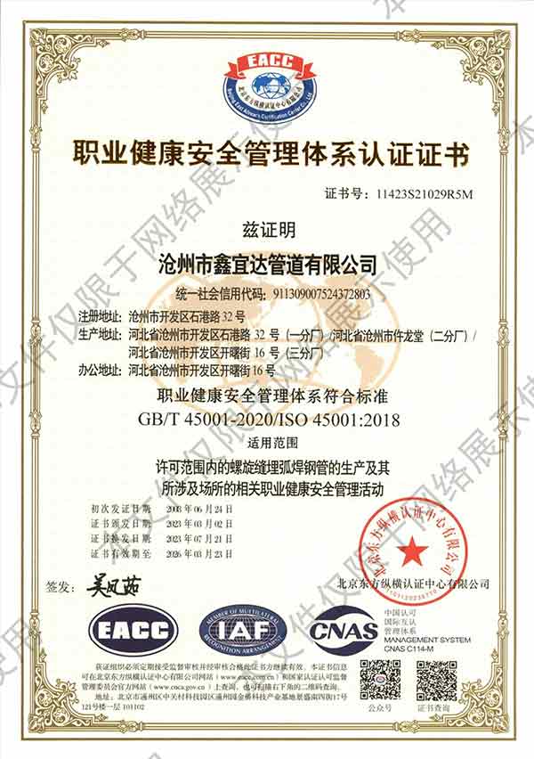 滄州市鑫宜達管道有限公司社會責任報告